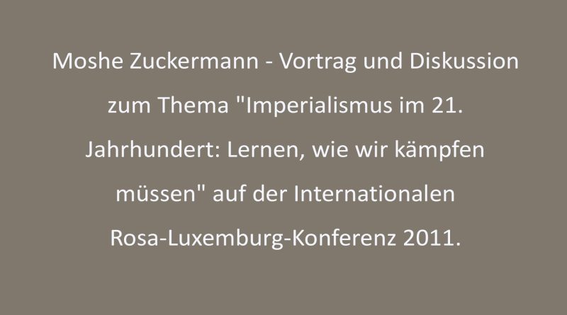 2011 Moshe Zuckermann am 8. Januar 2011 in Berlin 10. Januar 2011 Vortrag und Diskussion zum Thema „Imperialismus im 21. Jahrhundert: Lernen, wie wir kämpfen müssen“ auf der Internationalen Rosa-Luxemburg-Konferenz 2011. Der Vortrag (Audio) Die Diskussion (Audio)