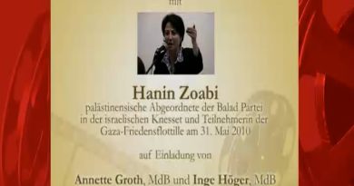 Die Journalistin und Menschenrechtsaktivistin Rajaa Zoabi Omari aus Haifa von der Organisation Abnaa-el-Balad zum Thema “Gleichheit statt Apartheid” auf einer Veranstaltung des Palästinakomitees Stuttgart.