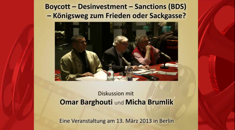 WeiterlesenMittwoch, den 13. März 2013 in Berlin Diskussion mit Omar Barghouti, Autor von “Boycott – Desinvestment – Sanctions” und Micha